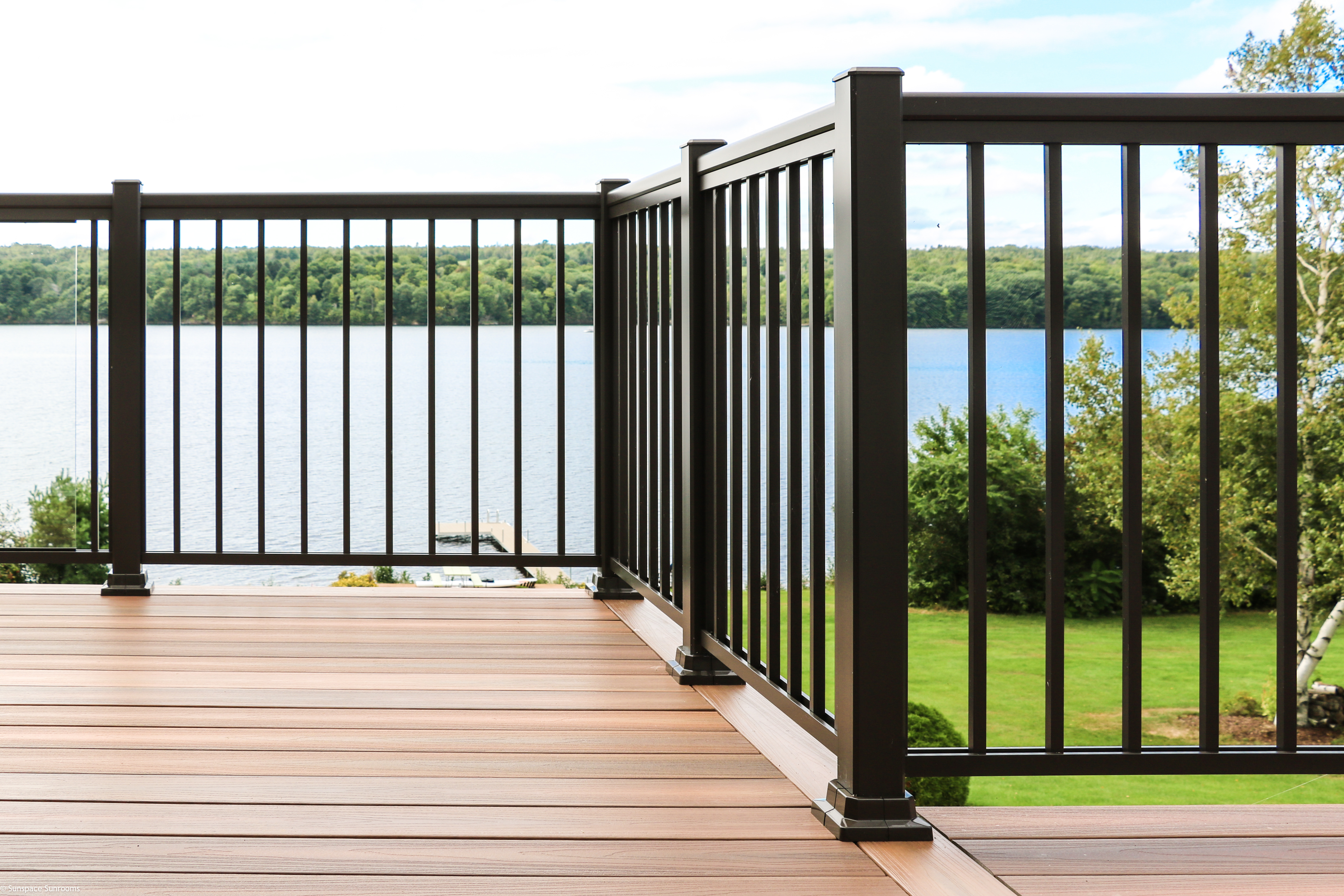 Sunspace Aluminum and Glass Railing Systems are premium railing solutions designed for residential, cottage, and commercial applications. Choose between modern glass railings or a selection of classic picket styles to complement your space. Available in five standard colours, Sunspace offers options to suit a wide range of architectural styles.